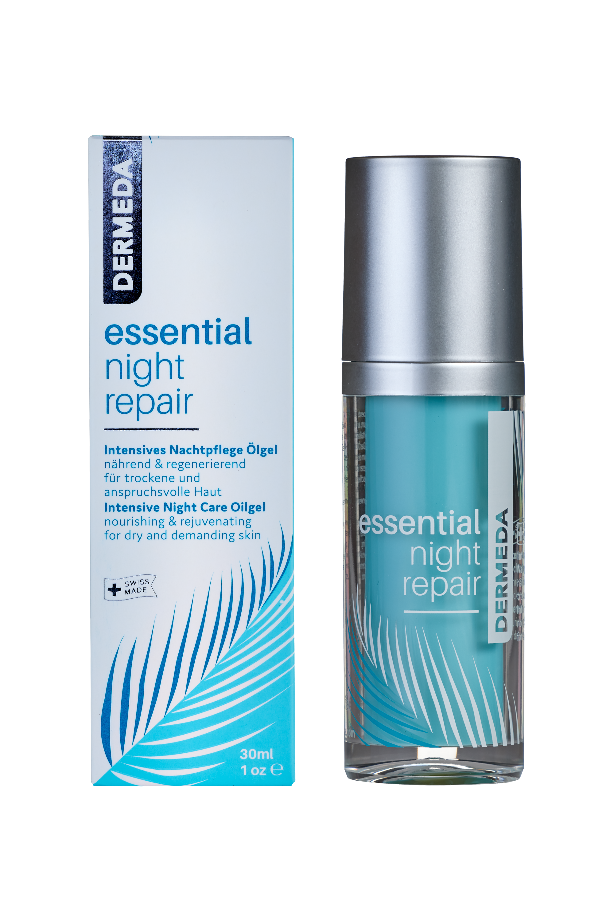 Skin metabolism and regeneration processes are highly active during the night. DERMEDA «night repair» is an ultra-nourishing and rejuvenating oil-gel which helps to repair the skin structure while you are sleeping. This intense care is a booster for skin regeneration.
