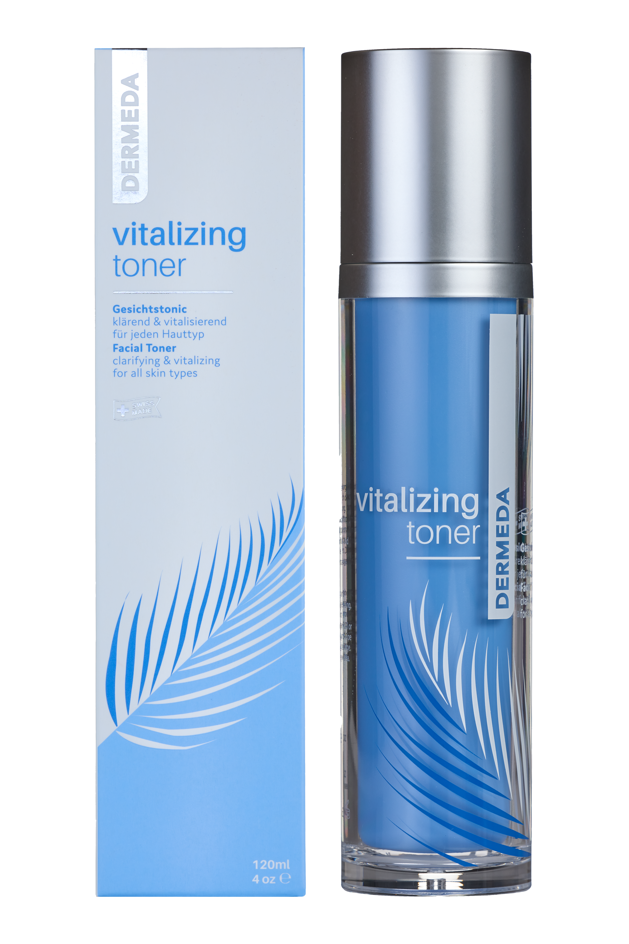 DERMEDA «vitalizing toner» is a deeply hydrating formula that gently tones and removes any excess oil and traces of impurities. It reduces the appearance of pores and prepares the skin to an optimum for the next steps of care.
