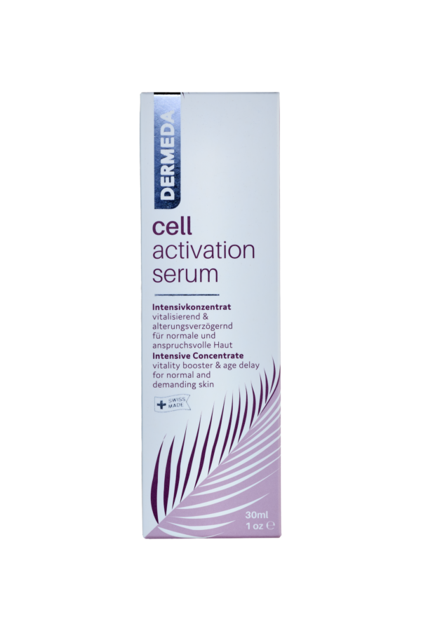DERMEDA cell activation serum is an intensive concentrate, a vitality boost and helps with age delay. This optimal formulation activates and optimizes skin strength giving you a youthful and healthy skin appearance.